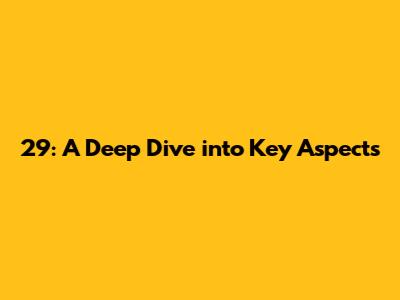 29: A Deep Dive Into Key Aspects