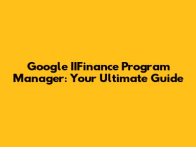 Google IIFinance Program Manager: A Comprehensive Guide
