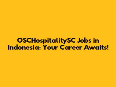 OSCHospitalitySC Jobs In Indonesia: Your Career Awaits!