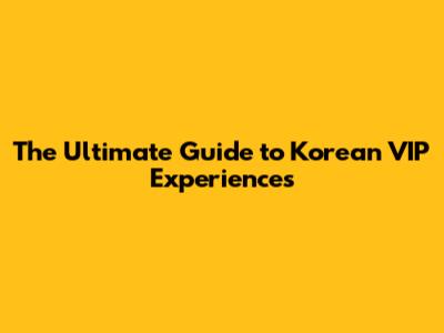Ultimate Guide To Korean VIP Experiences