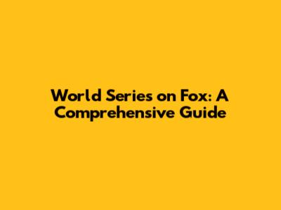 World Series On Fox: A Comprehensive Guide